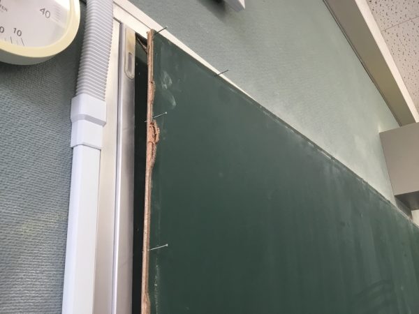 今回の現場は「初代の黒板」に「2代目の黒板」が張り付いている教室でした。