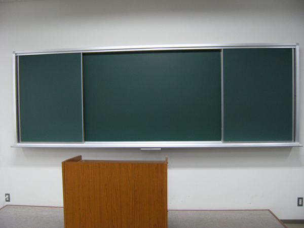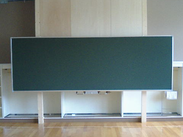 左右に板面が動く仕組みの黒板です。異なった板面の組み合わせにしてみるなど多目的に使用が可能で、非常に便利です。板面に罫線を印刷することもできますので、音楽室への設置等いかがでしょうか。