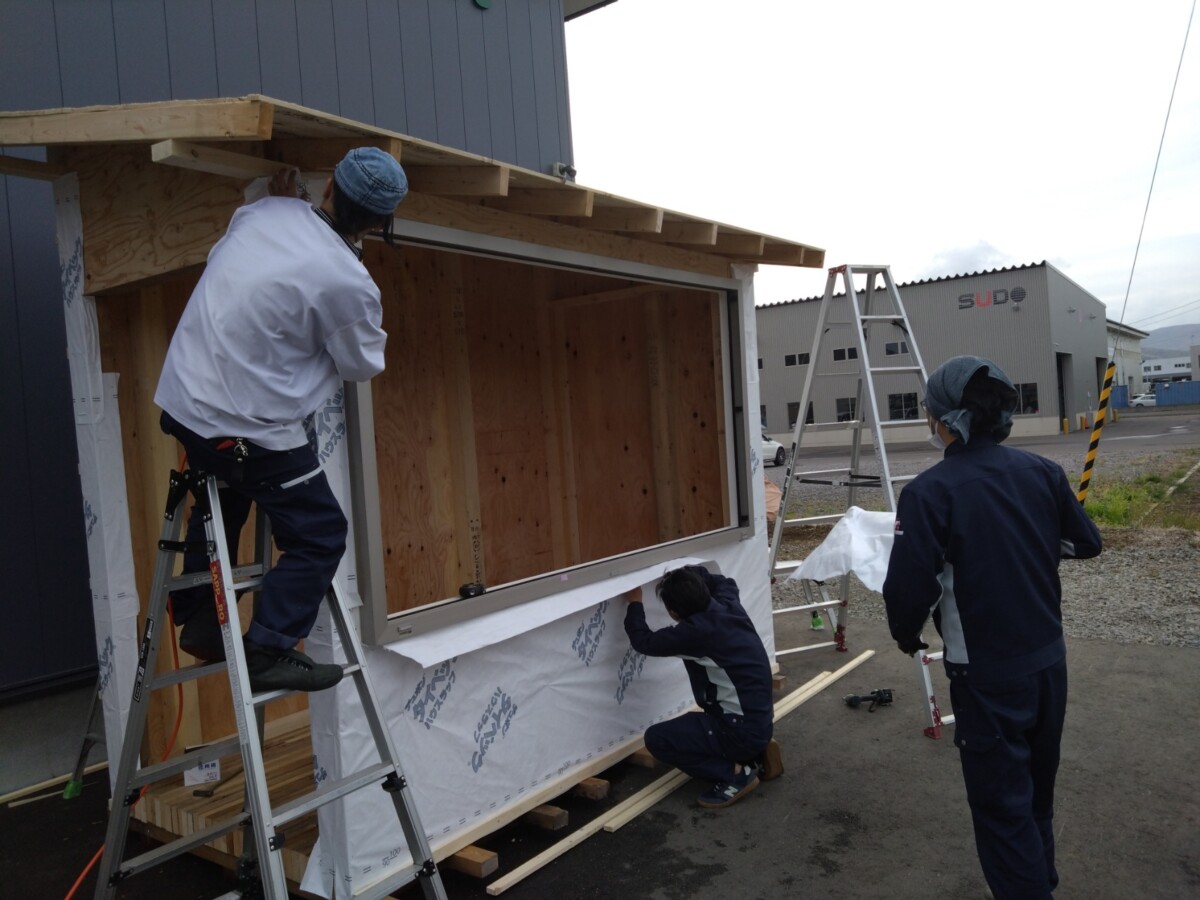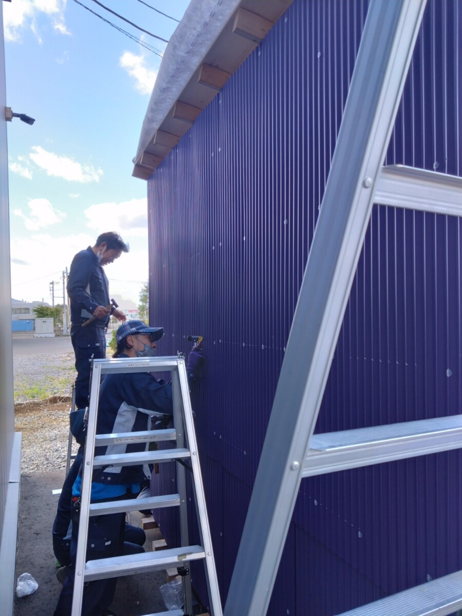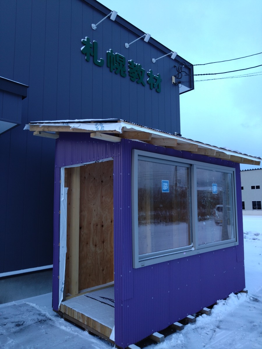 窓、壁が付きました。壁の色は紫でオシャレでしょ?