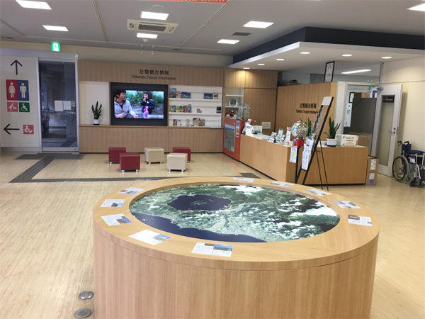 そうべつ道の駅 壮瞥町の道の駅のリフォームなどを担当しました 丸いテーブルに写っているのは洞爺湖ですね!各地の観光名所を紹介するものです 北海道には洞爺湖だけでなくもっと素晴らしい観光名所があるので 来た際にはそちらもぜひ立ち寄ってみてください