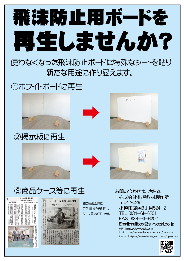 この飛沫防止柵の再生化は弊社で承りますので、私と同じように心配されている方は、安心してください。