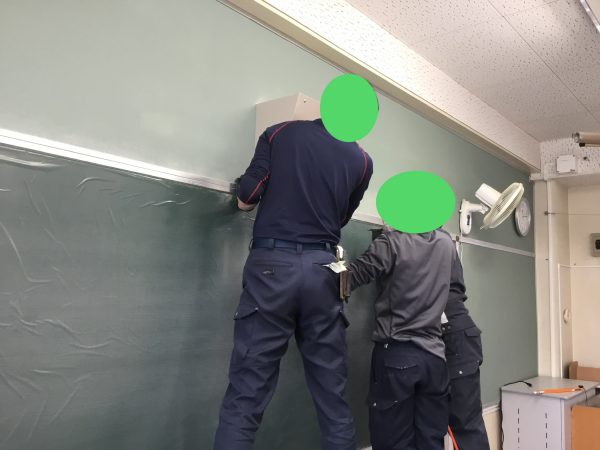 前回、新しい黒板の固定作業に入った現場ですが、そこで作業の手がピタリと止まりました。