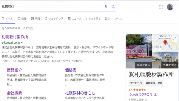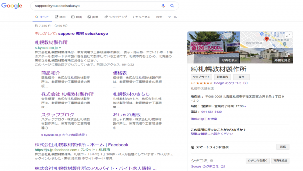 Googleで札幌教材製作所を検索したときに下記の画像のようになると思うのですが見たことありますか?