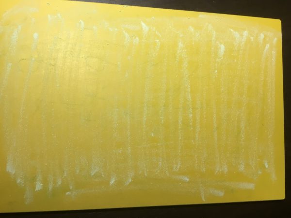 白いチョークで縦横に色を塗って、水洗いをして…を3回繰り返すと……