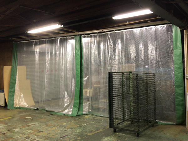 空間ごとにカーテンを設置することで暖房がついている空間はつねに暖かい空気がこもっています! ストーブも社員の要望に社長が応えてくれました!これで寒い冬もこわくない!(*´∀`*)